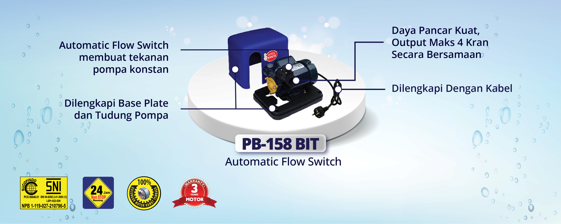 Pemutus Arus Otomatis jika motor pompa overheat, sehingga motor tidak terbakar.