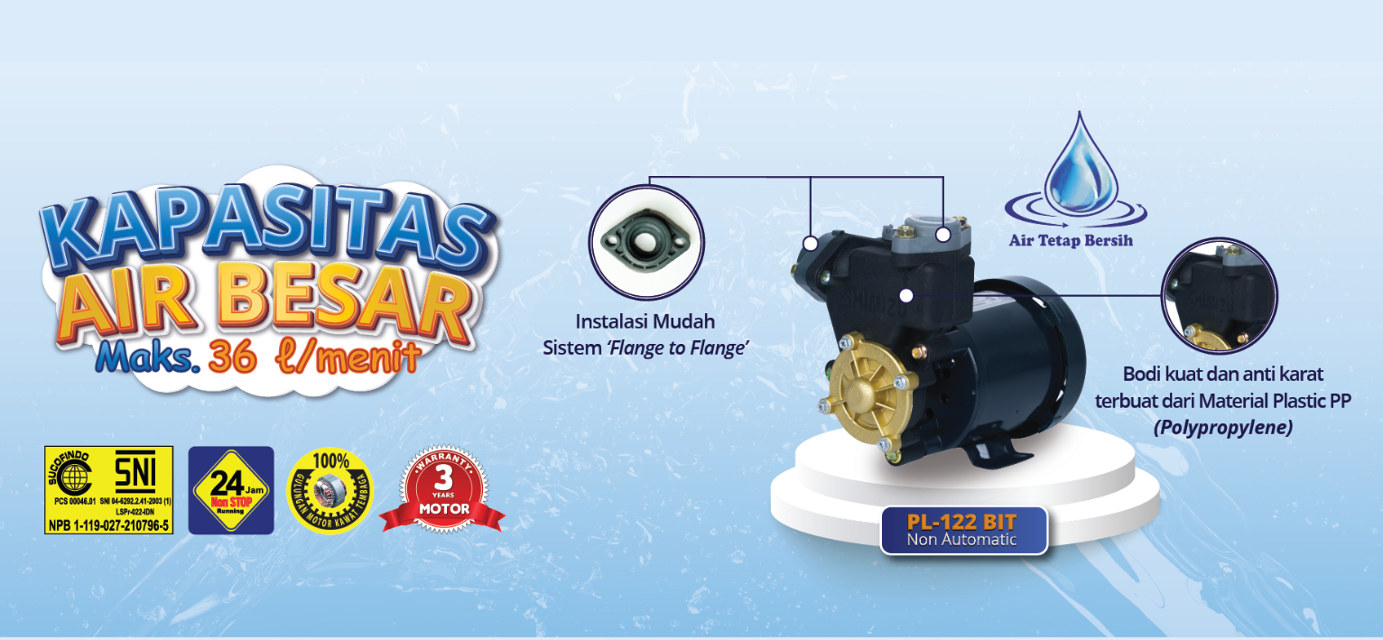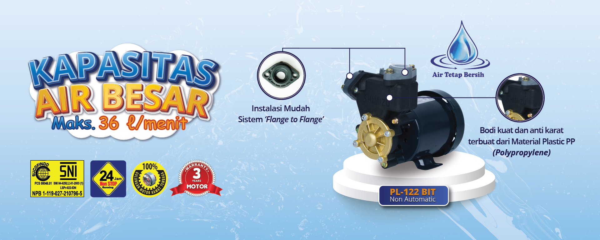Motor Pompa Shimizu menggunakan 100% Kawat Tembaga sehingga motor lebih kuat, tahan lama, dan tidak mudah terbakar.