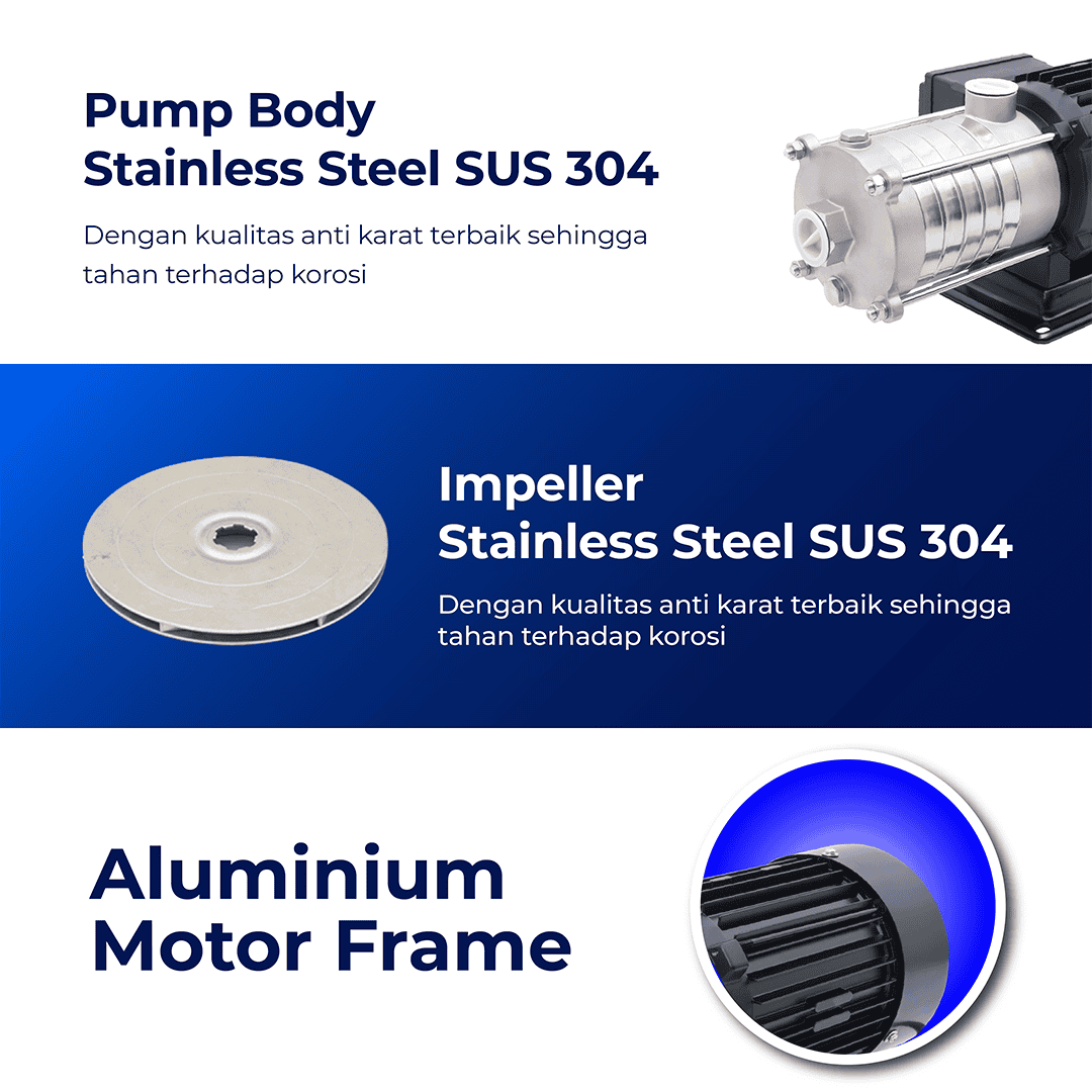 Pump Body terbuat dari Stainless Steel SUS 304