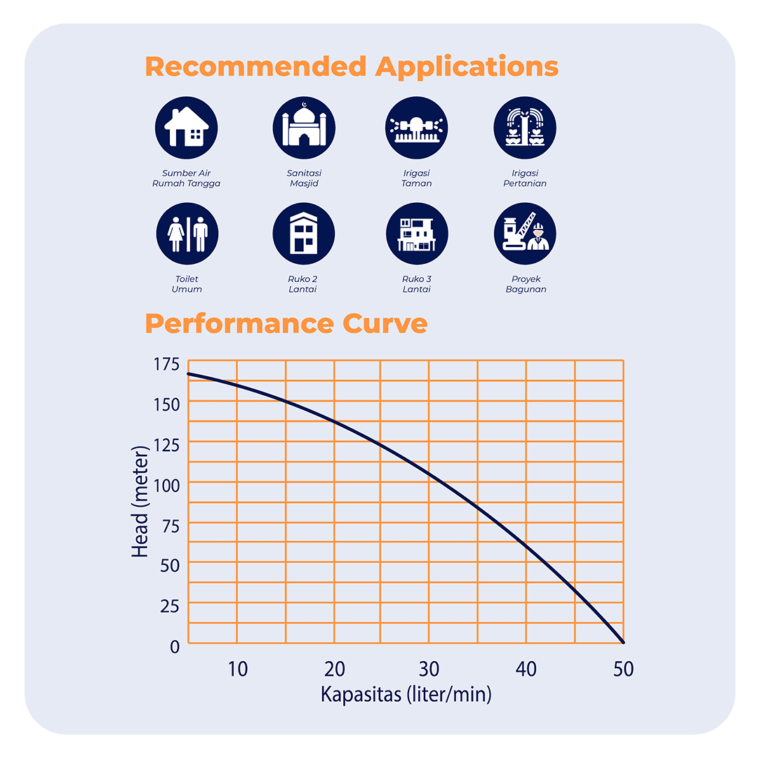 SS-428K BIT memiliki Total Head maksimal 168 meter. Disaat head 158 meter, debit air yang dihasilkan 10 Liter/Menit dan pada saat head 116 meter, debit air yang dihasilkan 30 Liter/Menit serta saat head 28 meter, debit air yang dihasilkan 50 Liter/Menit.